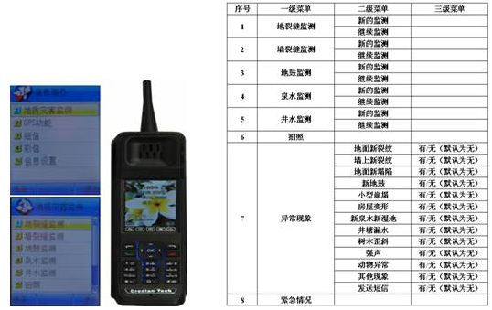 群测群防信息终端设备及监测菜单